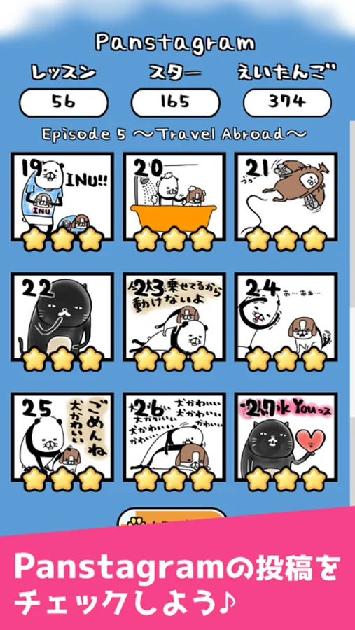 インスタグラムで大人気マンガ「パンダと犬」の英語学習ゲームが登場!