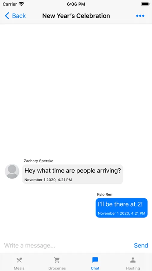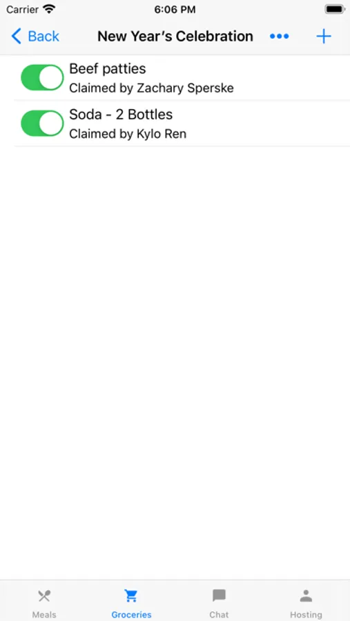 - Use the groceries page to keep track of what needs to be brought, who will bring it, and how much they paid for it.