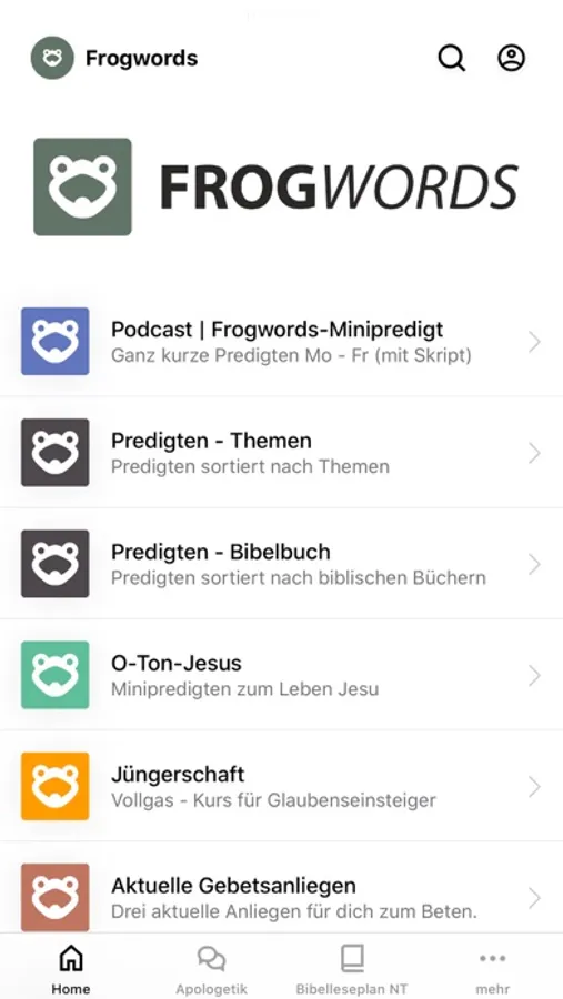 The FROGWORDS App helps you grow in your relationship with Jesus Christ. Your App from Jürgen Fischer delivers you daily devotionals, sermons, message notes, discipleship-course, access to frogwords.de, and more. Please share with your friends. All messages are given in German!