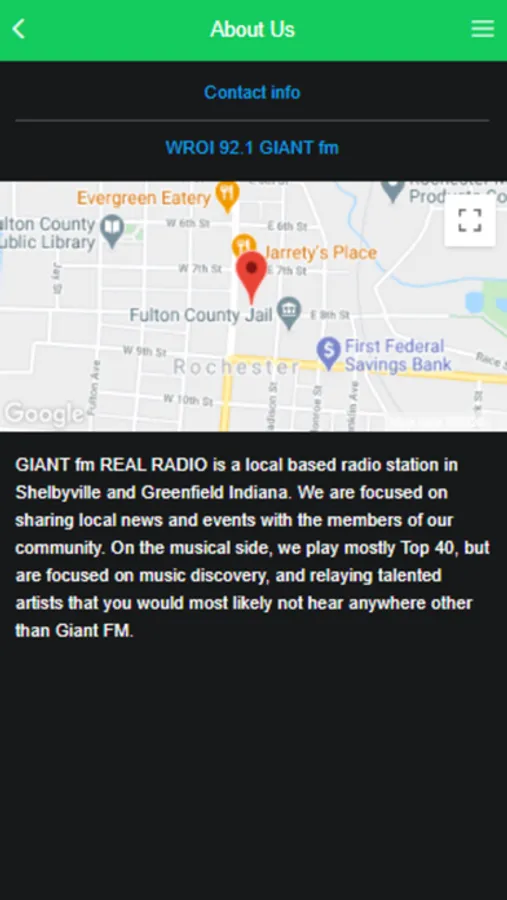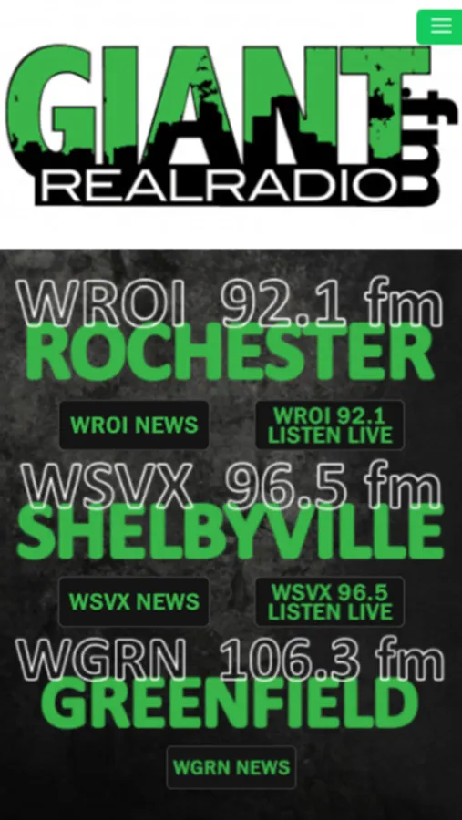 GIANT fm Real Radio serving local news, sports, podcasts and local information. WROI 92.1 fm in Rochester, WSVX 96.5 fm in Shelbyville and WGRN 106.3 fm in Greenfield.