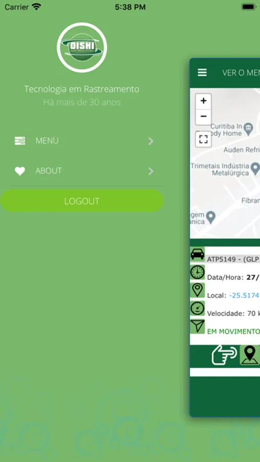 Através do aplicativo de Rastreamento da Oishi, você conseguirá bloquear e localizar seu veículo, além de visualizar o trajeto percorrido através do mapa.