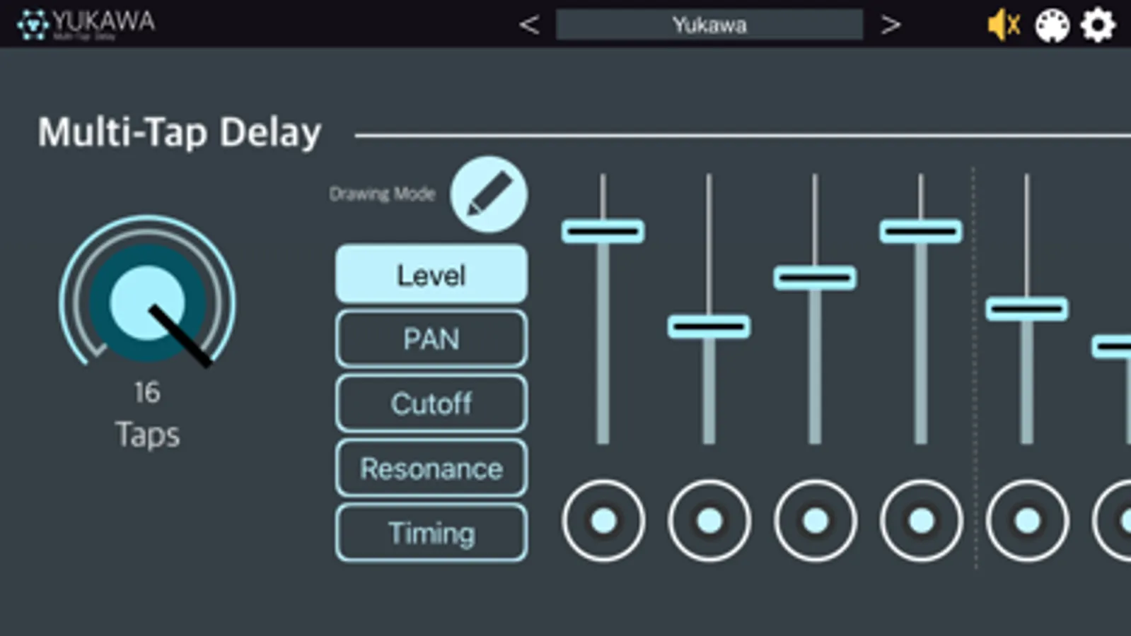 Yukawa is an AUv3 compatible effect plug-in that combines a tempo-synchronized multi-tap delay that produces rhythmic phrases, a modifiable stereo delay, and a DJ mixer-style filter.