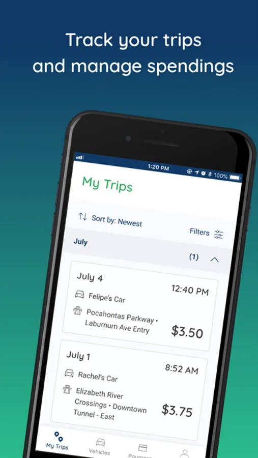 View trip details using your mobile device, manage your spending, and add multiple vehicles to your account — including rentals!