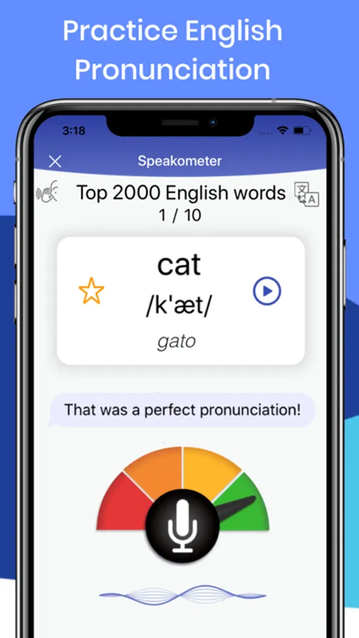 Speakometer is a free English pronunciation app that rates your speaking using its advanced AI algorithm and will guide you on how to improve your English pronunciation.