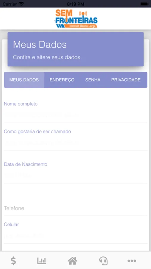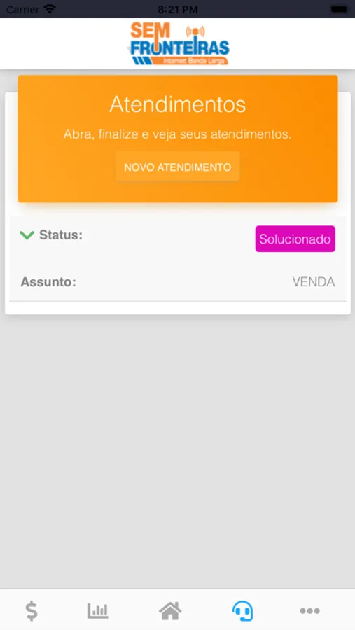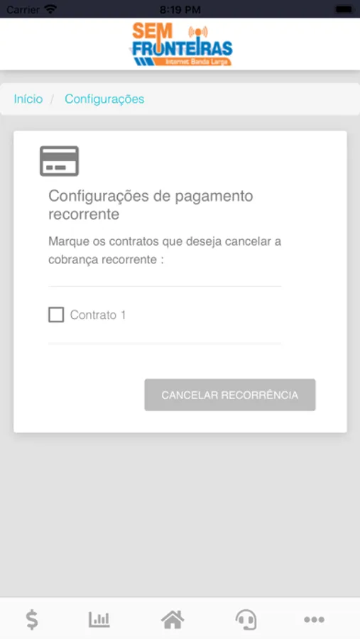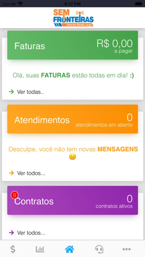Aplicativo feito para consultar faturas, assinar contratos ao trocar de planos, acompanhar o consumo de de internet.