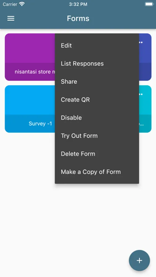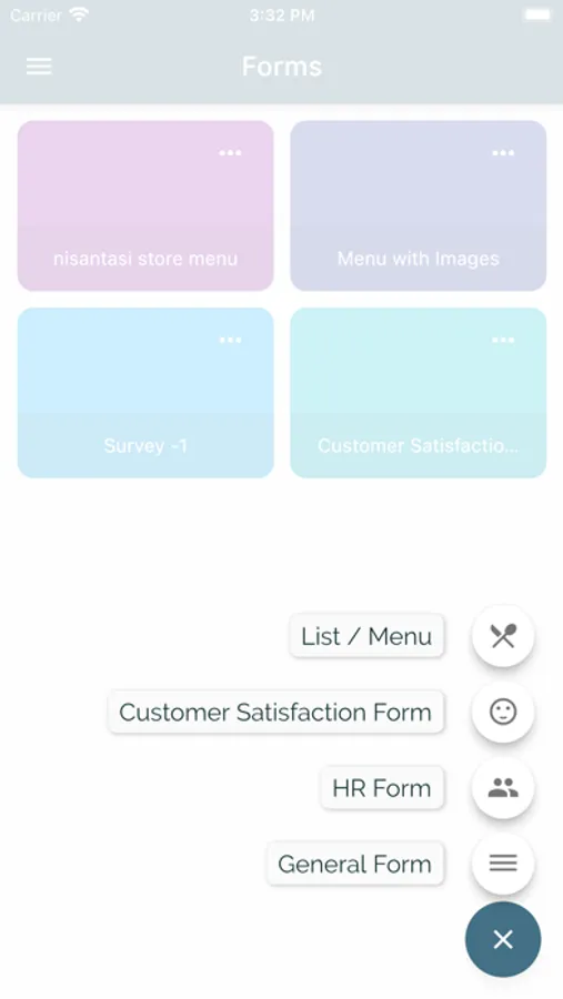 Create forms, lists & menus on mobile application, share with a link or QR code.