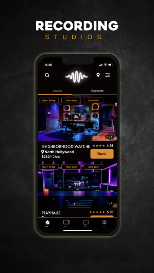 DISCOVER recording studios within The Watche network. After finding a studio that matches your requirements, schedule, and budget -- you can BOOK and pay for sessions all within the app. When your session time arrives, go to your booked studio and CREATE music. It has never been easier or quicker.