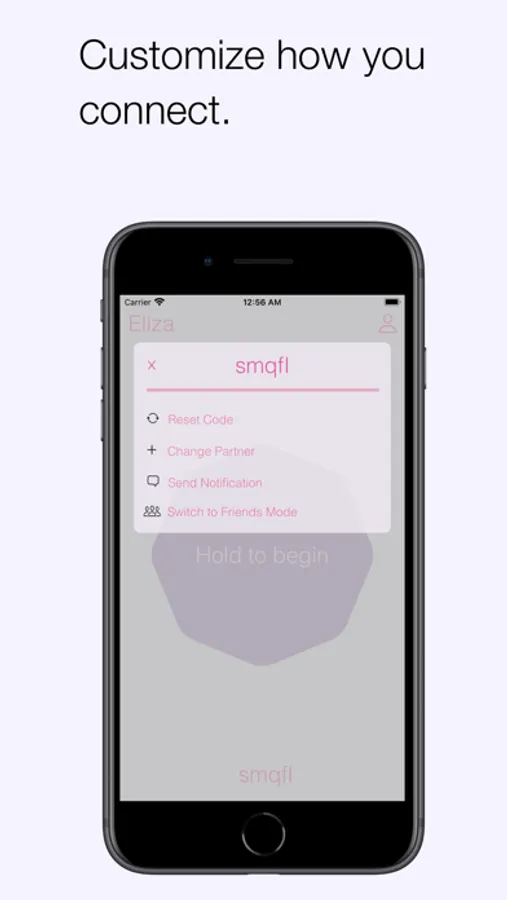 Free of ads or pesky and unnecessary sign-ins, each phone gets a unique code which you then send to your partner. Input your partner’s code into your phone and voila, you’re instantly connected. Holding down on the shape in the middle of your screen at the same time triggers a synchronous beating pattern that unites you, which you can both see and feel. You can also let your partner know you need them, right through the app, by sending them a notification.
