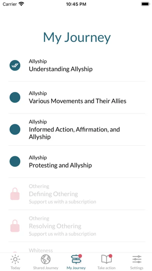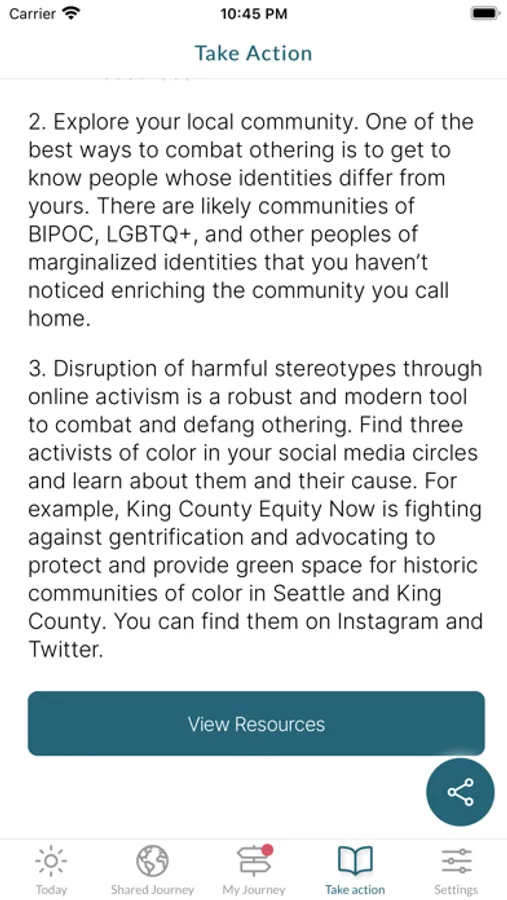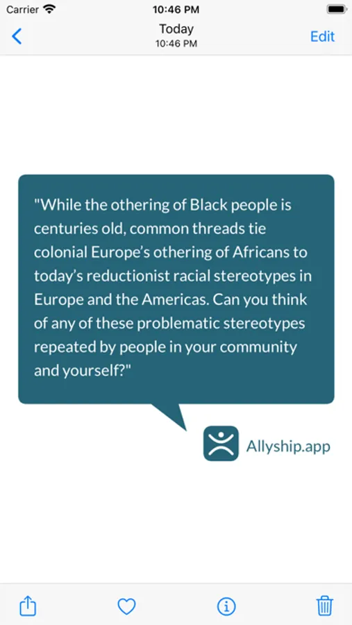 Allyship App helps users evaluate their awareness and ability to be an effective ally of the Black, Indigenous and People of Color (BIPOC) community, and provides ongoing resources to support their learning on a daily basis.