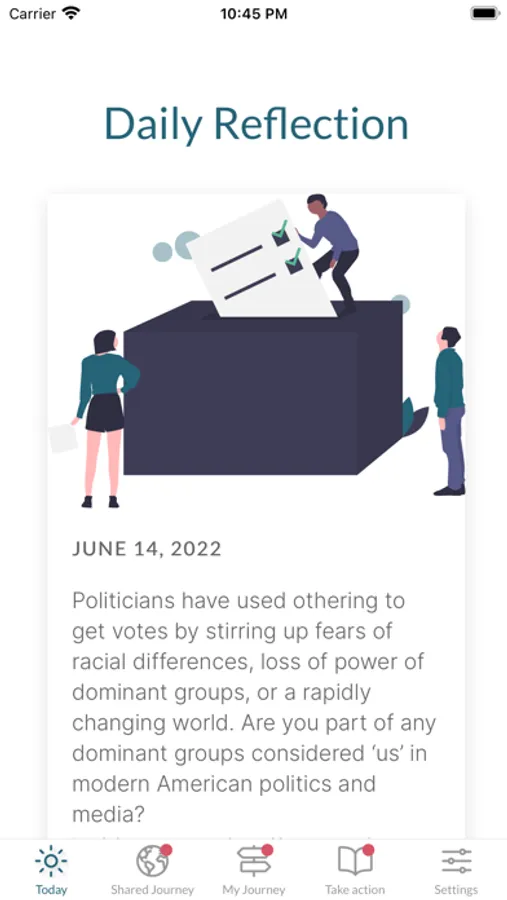 - Daily reflections intended to inspire critical thinking and molding mindsets regarding racial inequalities.
