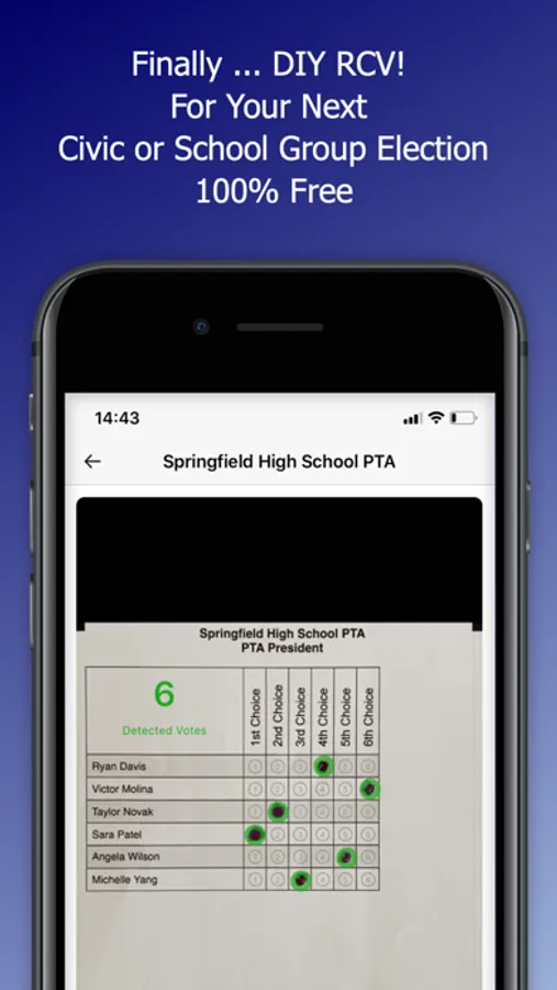 Though the RCV123 app is only for non-government elections at the community level, scanned paper ballots are used in 95% of official voting machines in the US. So holding a DIY vote with RCV123 is a great way to educate citizens about official ranked-choice voting.