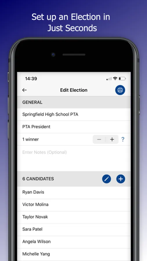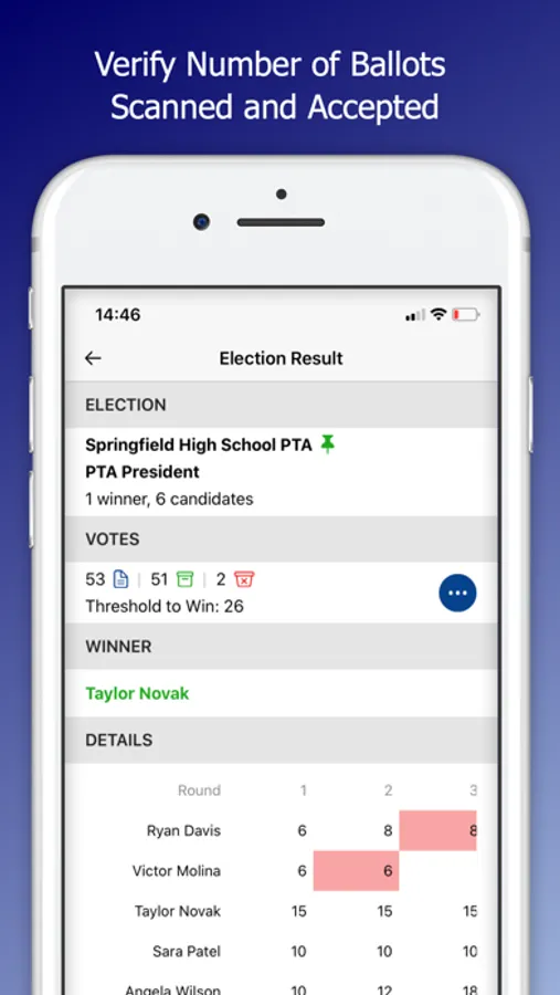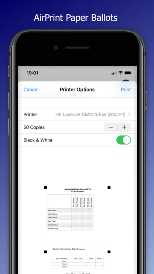 The RCV123 app quickly sets up, prints and scans paper ranked-choice voting ballots, and calculate results instantly.