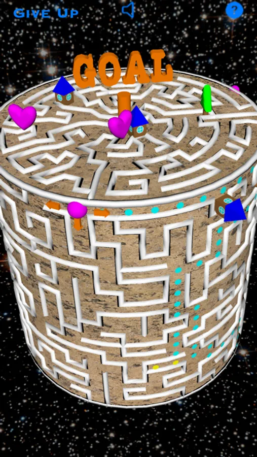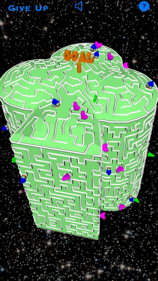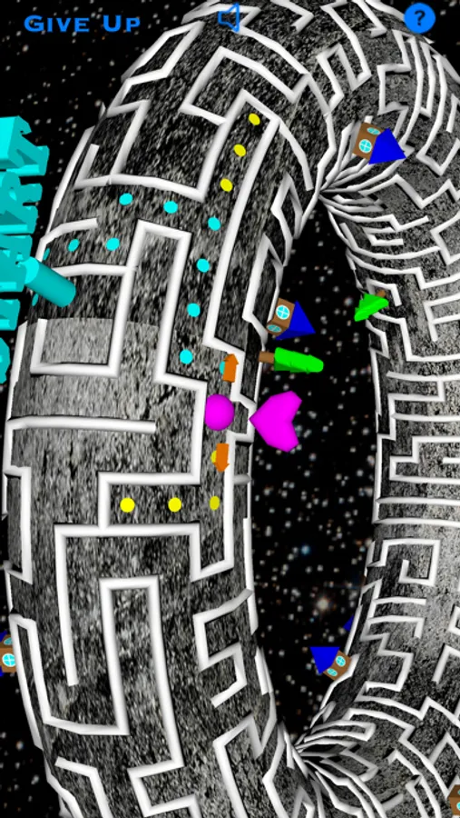 The maze is built on a surface of planet like Sphere, Cylinder, Cube or Torus shape.