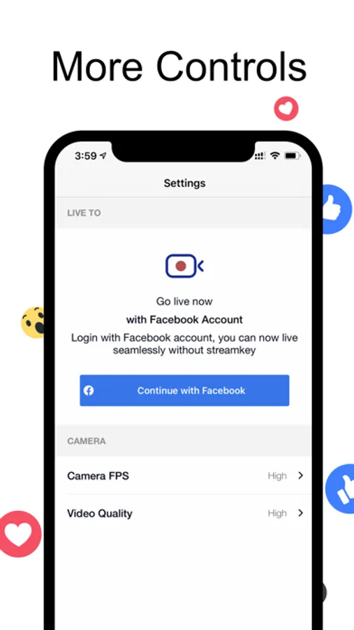 Up to 720HD live streaming for both primary and secondary camera for Facebook Live.