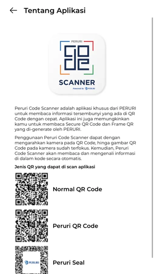 PERURI Code Scanner is a special application from PERURI to read hidden information in QR Code quickly. This application also allows you to read Peruri Secure Code generated by PERURI.