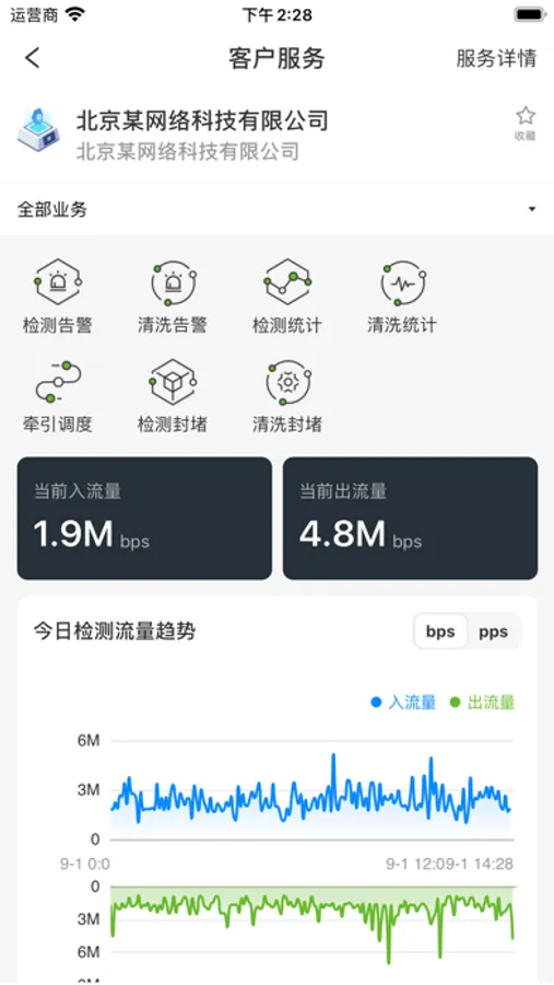 云清洗增值运营平台客户端,提供云清洗业务监控运维、监控可视化展示、统计报功能,客户端联动异常流量监控系统和清洗系统联动,策略自动下发,降低人力维护投入,实现智能终端进行自助服务。
