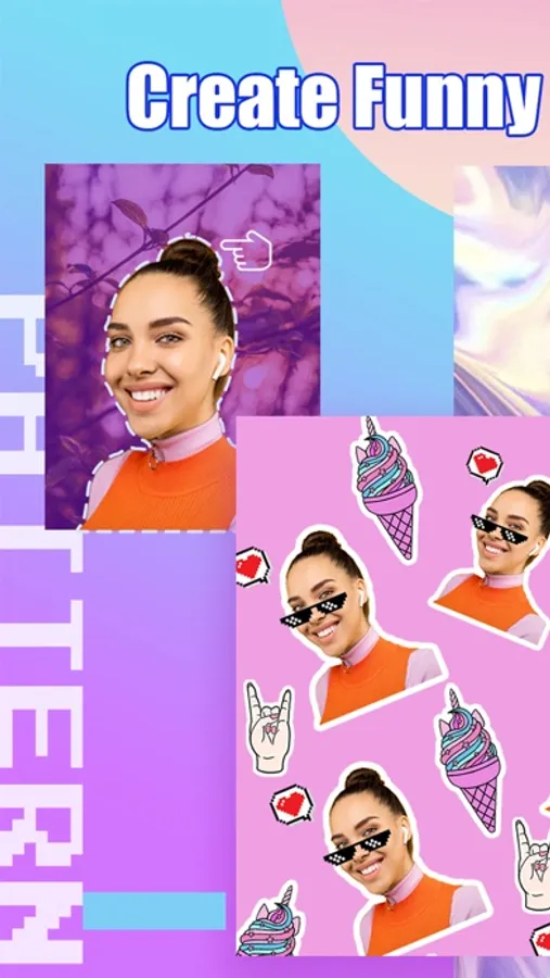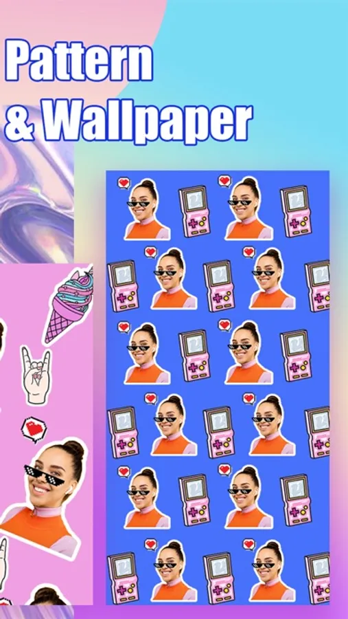 △Combine different stickers, photos, text and backgrounds to create creative patterns.