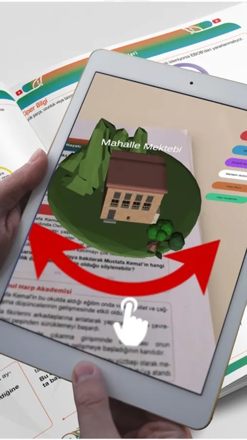 Uygulama açıldığında kitabın kapağında veya kitabın içindeki AR ikonu bulunan resimlere cihazınızı tuttuğunuzda canlanan senaryolarımızı izleyebilirsiniz. Canlanan derslerimizdeki modellerimizle etkileşim sağlayabilir, böylece öğrendiklerinizi kalıcı hâle getirebilirsiniz. Ayrıca canlanan derslerimizi kaydedebilir, anlık görüntü alabilirsiniz.