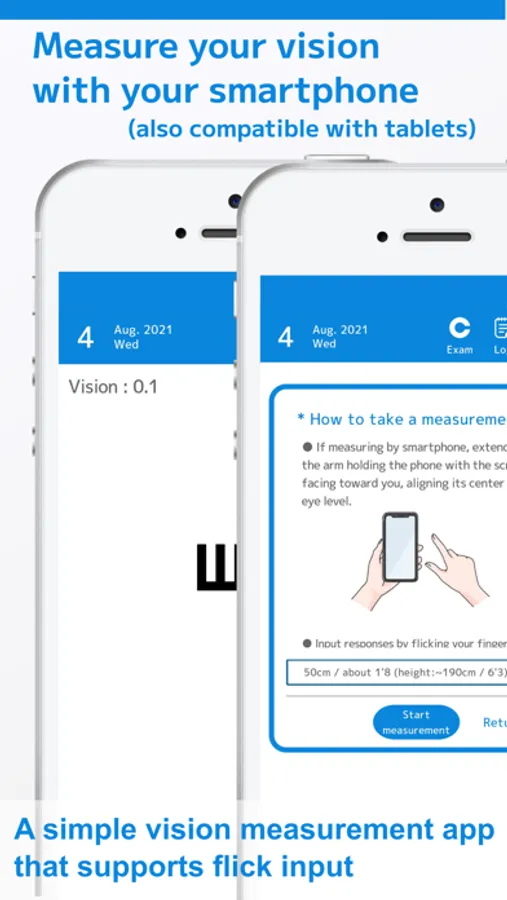 Unlike vision measurement apps where you input your response by tapping a button, this app uses flick input, allowing you to maintain a natural posture throughout the test even when measuring with a smartphone.