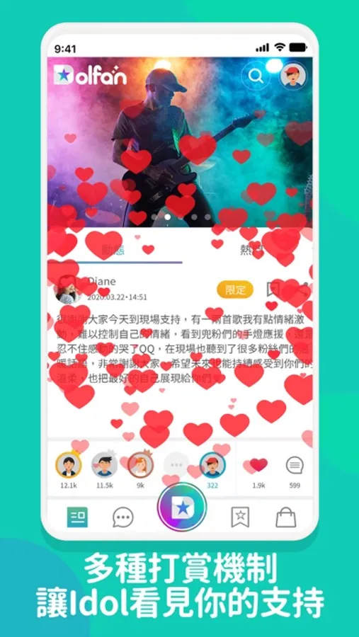 ■多樣化的打賞互動機制,讓偶像看見自己的熱情與心意