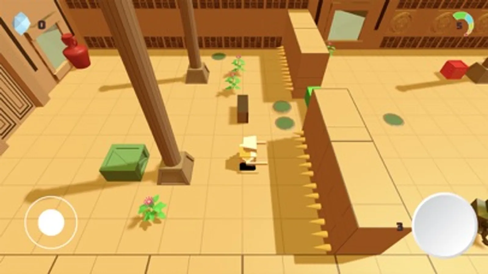 Fight other BAD robots, Guardian Statues, Man Eating Plants (for later levels), drop bombs, press switches and push crates to the void.