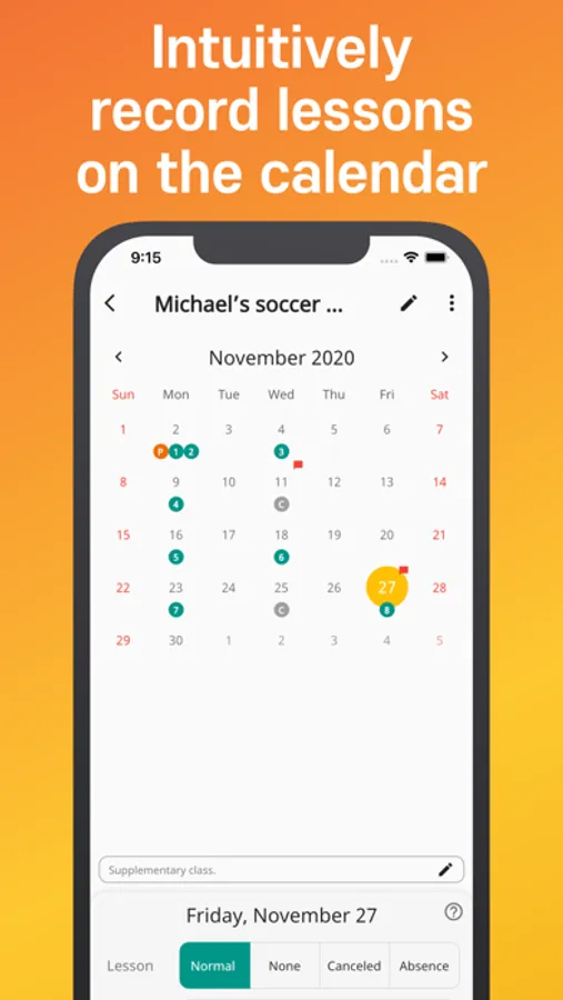 Lesson note are also useful for teachers. Teachers can intuitively manage many children's lessons at the same time and different tuition payment dates. Easily find the available time with the timetable.
