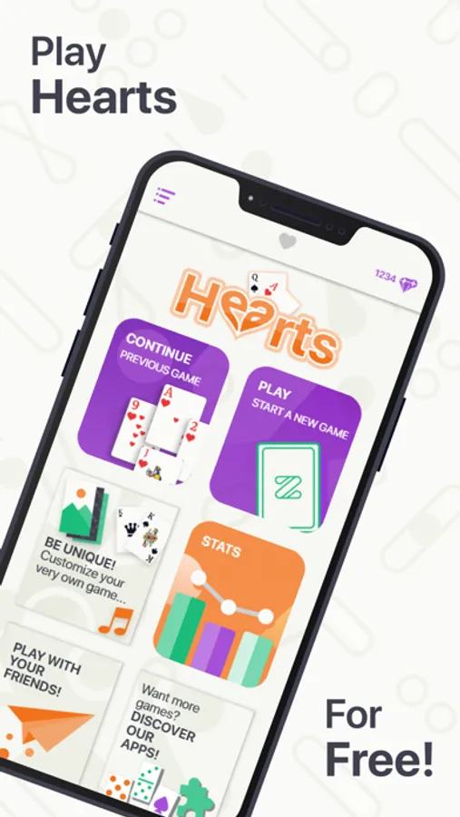 Playing Hearts is not only exciting, it trains your brain and improve your strategic skills. It is also a very good way to take a break and relax. Join our Hearts experience to relax and stay sharp with a very complete, easy and smooth app!