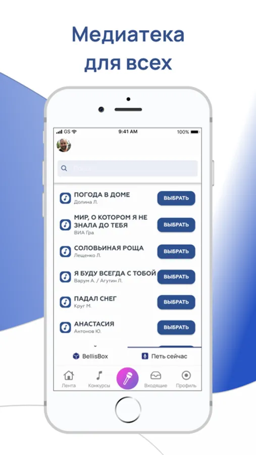 Наша платформа объединяет исполнителей стационарных караоке-боксов Bellis Box* и любителей петь онлайн, создавая телемост, где люди заявляют о себе, исполняя и записывая любимые хиты, а также ищут друзей с похожим музыкальным вкусом, участвуют в вокальных конкурсах с денежными призами, исполняя хиты - сольно, дуэтами, и даже совместно со звёздами.