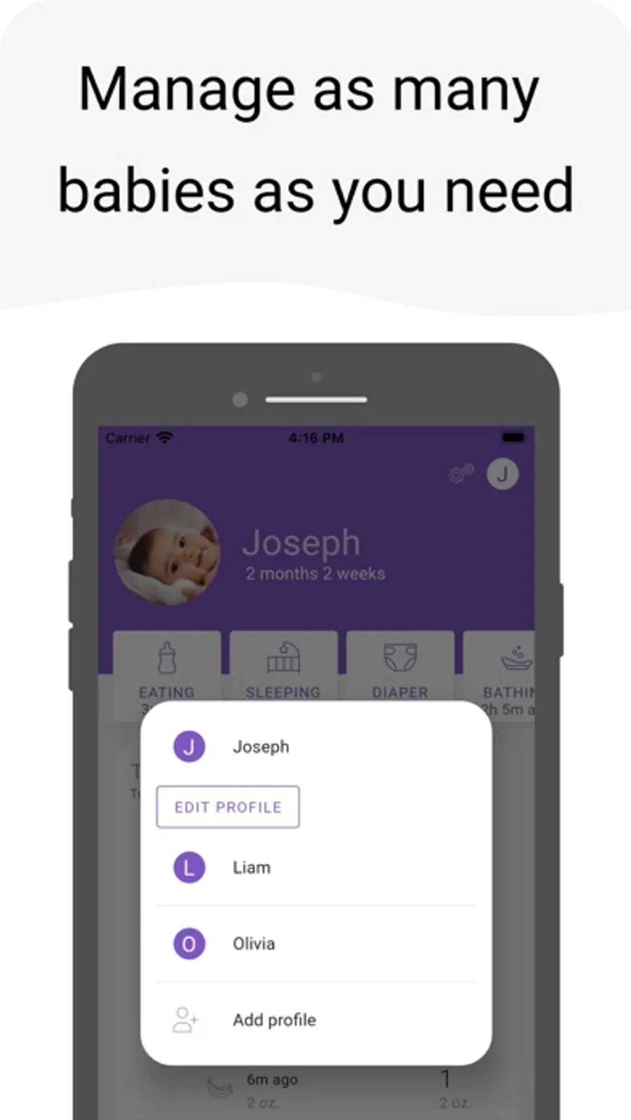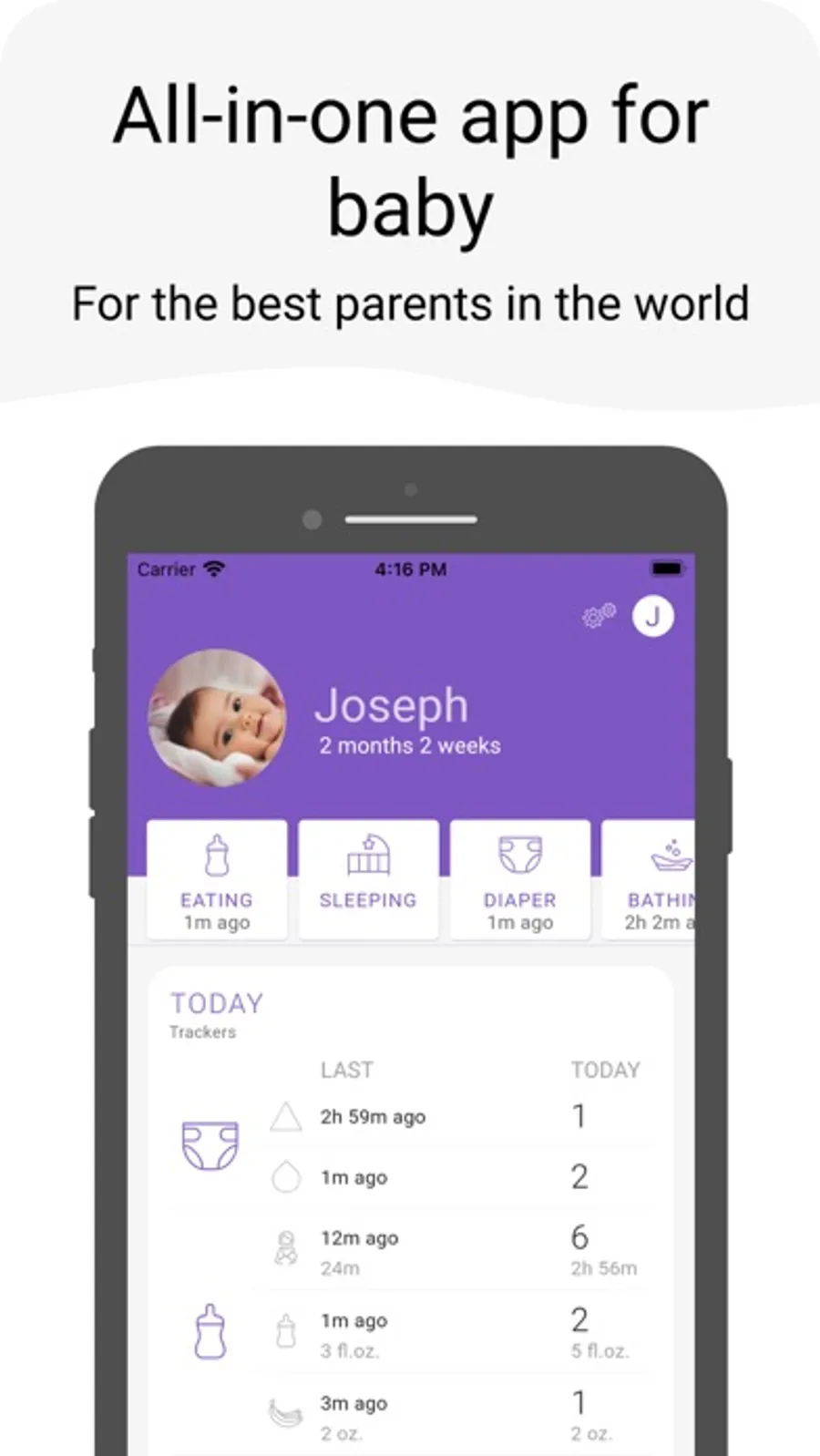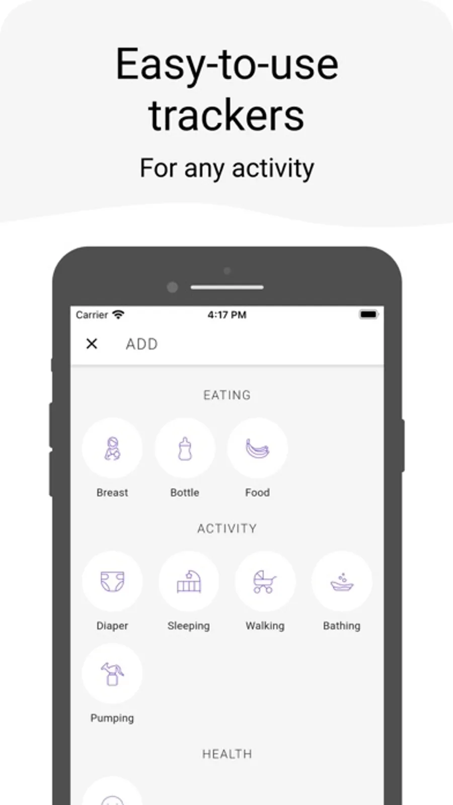 - breastfeeding, bottle feeding, food tracker and pumping tracker