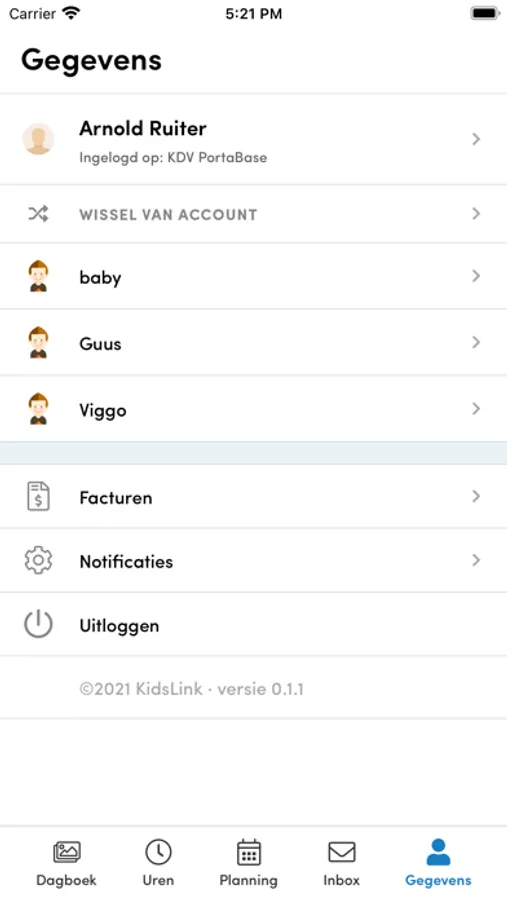 Mocht u van meerdere kinderopvangorganisaties gebruik maken die Portabase gebruiken, dan kunt u eenvoudig wisselen tussen de verschillende accounts.
