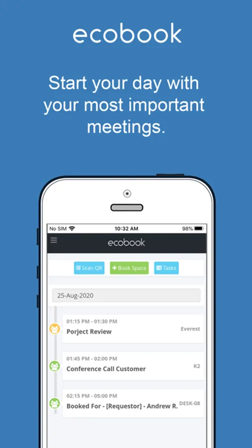 The ecobook room and desk booking app provides a simple interface to allow your office staff to manage their space reservations.