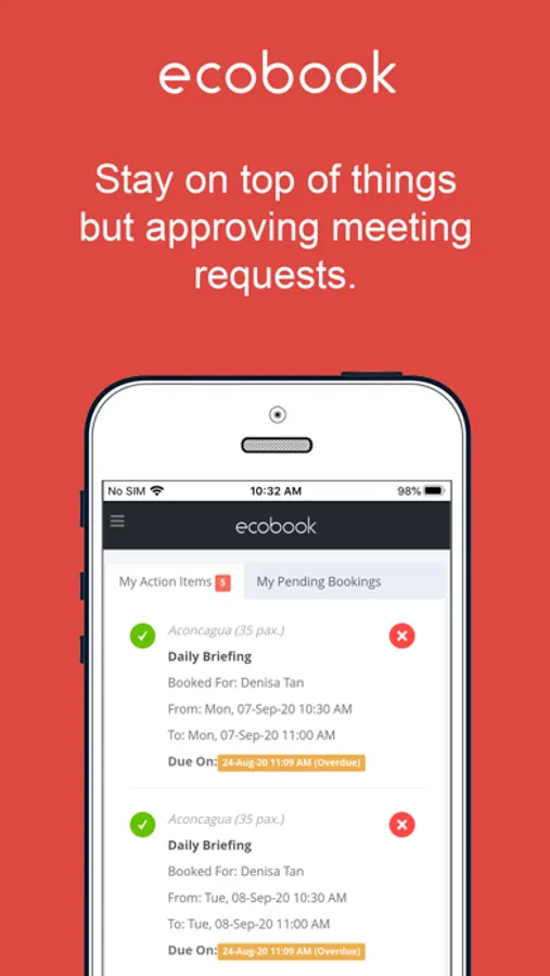 5. Approve/Reject booking requests for controlled rooms and desks.