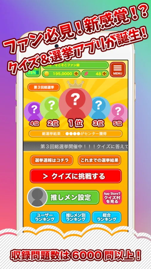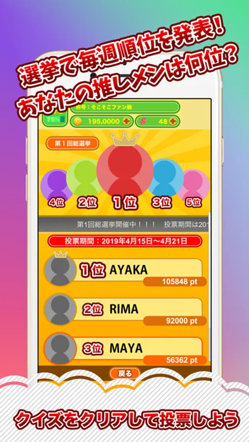 全国のファンとクイズで対戦!総選挙で推しメンをランキング1位に押し上げろ!