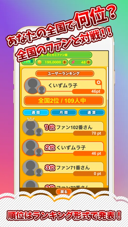 あなたは全国何位?クイズで獲得したポイントはユーザーランキングに反映されます。全国のファンとクイズ対決!