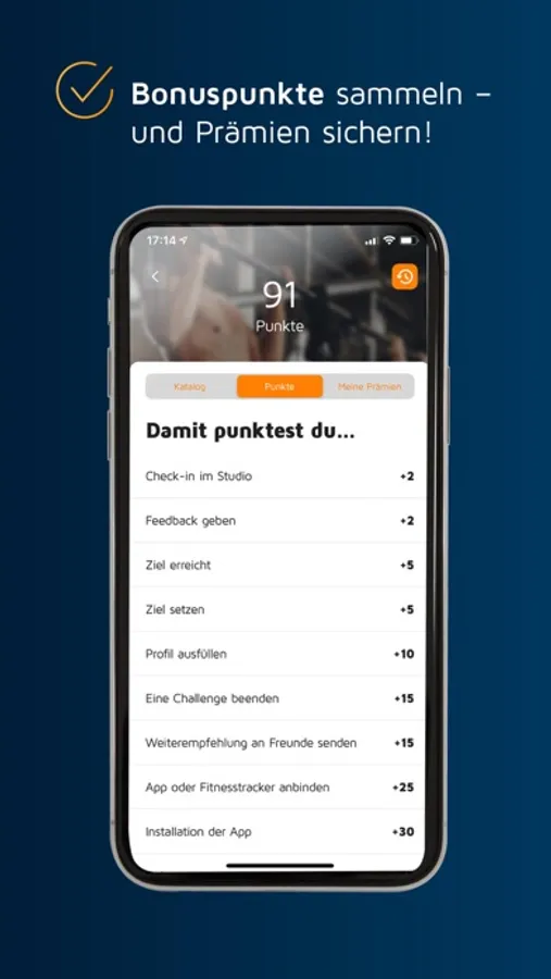 Als Motivationsbooster für die Extrarunde im Studio erhältst du für jede getrackte Fitnessaktivität Punkte. Komme durch regelmäßiges Training schneller an dein