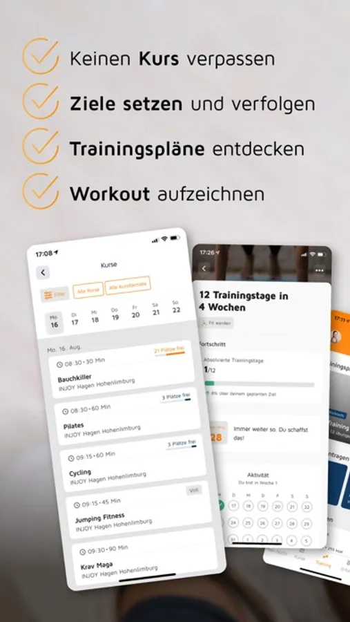 Wichtiger Hinweis: Um alle Features der INJOY360 App nutzen zu können, ist eine Mitgliedschaft in einem teilnehmenden INJOY Studio in Deutschland oder Österreich nötig. Bitte überprüfe unter studios.injoy360.de, ob die App in deinem INJOY verfügbar ist.
