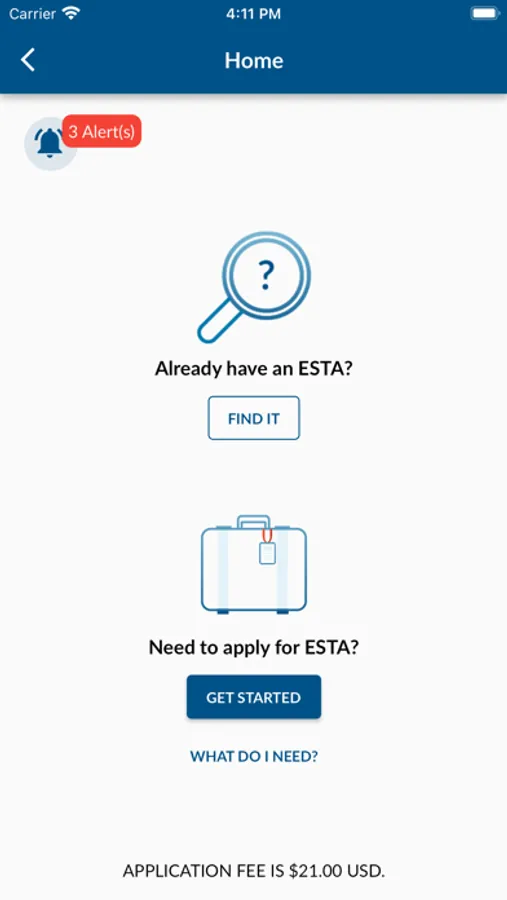 • The “FIND IT” feature allows travelers to check the status of their existing ESTA application..