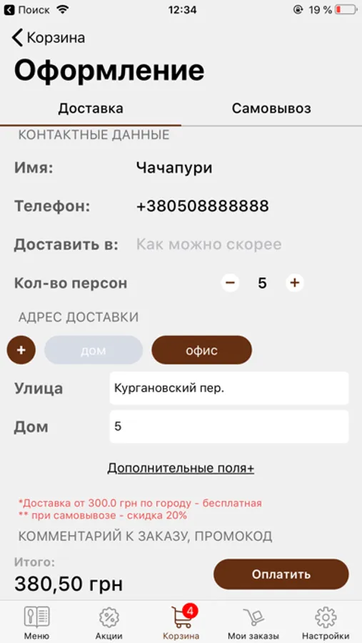 - встановити час, в який Ви б хотіли забрати замовлення з нашого закладу;