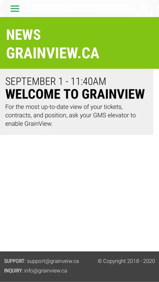 Instant access to GrainView.ca (a GMS product), for producers and elevators.
