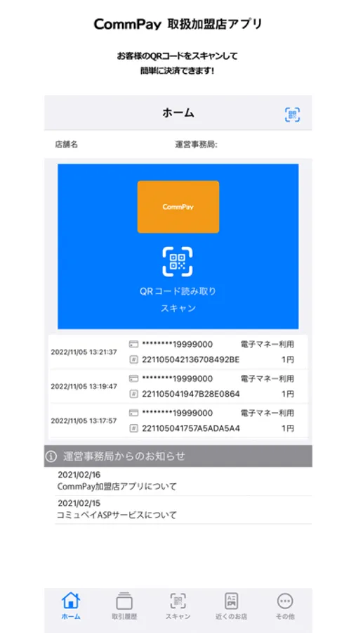 CommPayは、店舗様の決済・ポイント管理ができるアプリです。