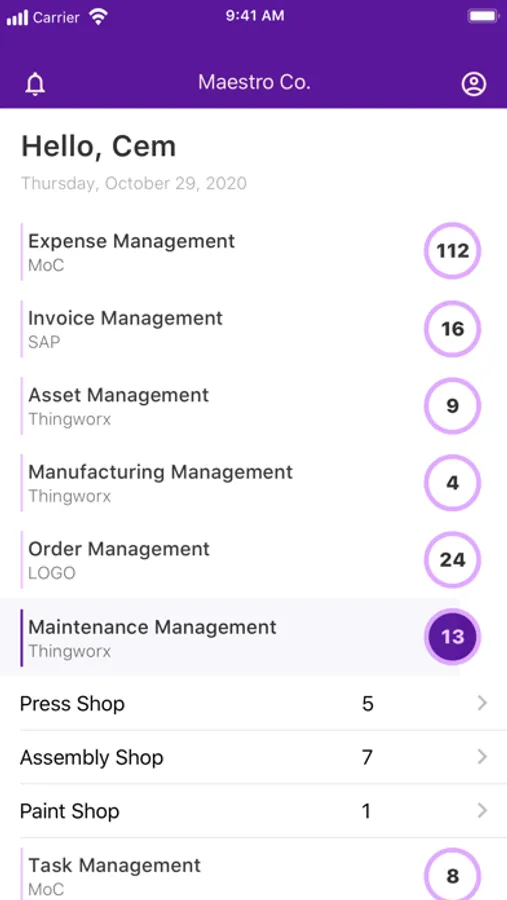 Maestro App is a cloud based, integrated suite of mobile services. It delivers a superior user experience by enabling users to trigger and to terminate automated workflows through mobile devices. The app operates in SaaS model. It supports multi language and provides a seamless experience by adapting to multiple use cases in the company.