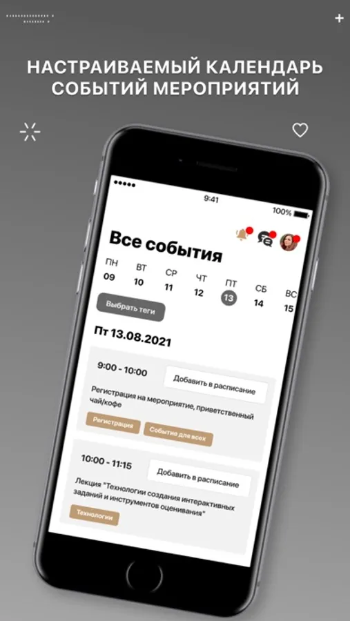 Сформируйте свой личный график из интересных Вам активностей выбранных мероприятий - приложение поможет их не пропустить.