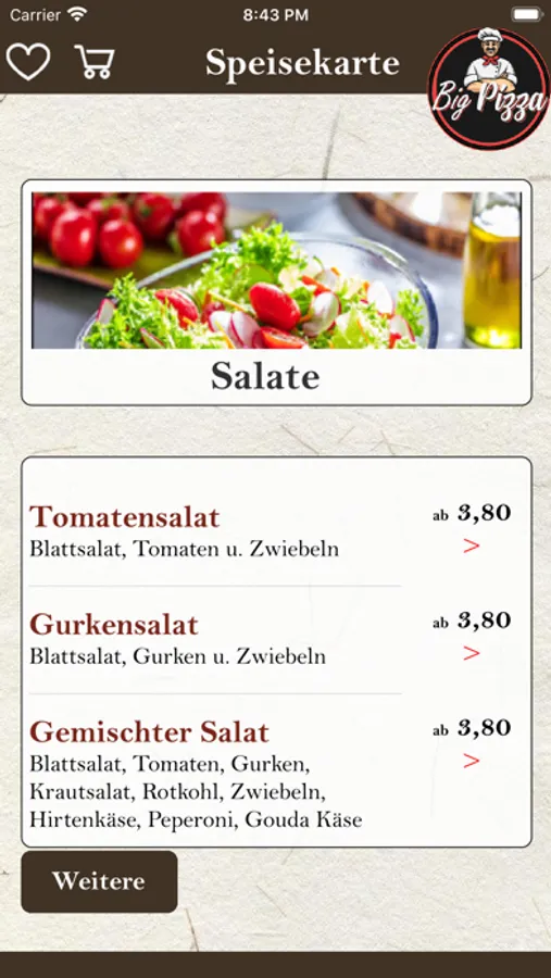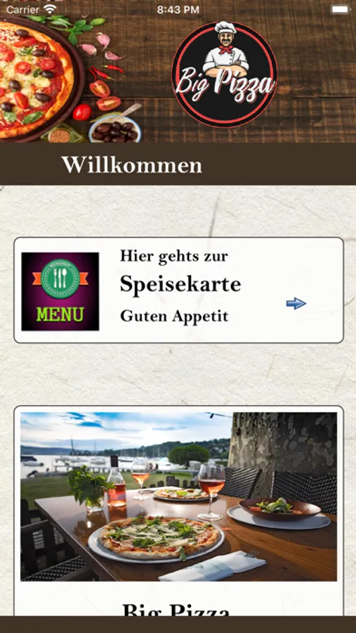 Mit dieser App kann in unserer Pizzeria, Big Pizza, online bestellt werden.