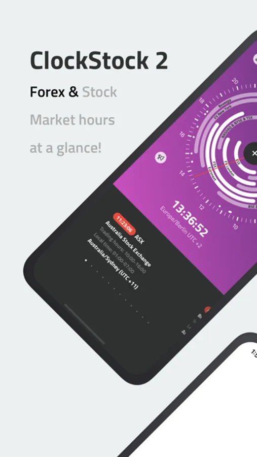 You can use ClockStock as a forex watch - to monitor only the forex hours or monitor the market hours of any stock exchanges of your choice. All 144 stock market hours are at your disposal!