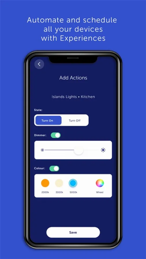 - Create custom Experiences to easily automate, set scheduled routines, or timers for your favorite settings (Ex: create an Experience that schedules the kitchen lights to turn off at 10 p.m. on weekdays and call it your "Good Night" Experience)
