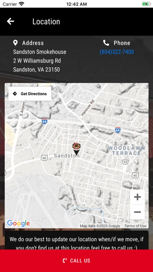 Use our convenient app for ordering your favorite food from Sandstone Smokehouse right from your phone! Check our current location and menu items for the day. Earn Loyalty Points with each purchase good for discounts! You'll also receive coupon codes periodically that can be used at checkout.