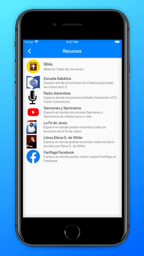 -Recursos: Biblia en todas las versiones, Folletos de Escuela Sabática, Radio Adventista Colombia, Fe de Jesús, Libros de Elena G. White, entre otros.