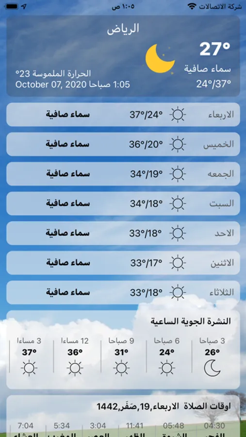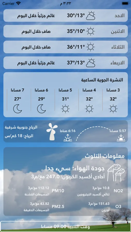 - اختيار وقت تنبيه يوميا بالحاله الجويه لليوم التالي