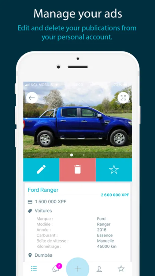 Save precious time by capturing your photos and writing your ad right there on your phone. Respond to interested buyers and send them other pictures with instant messaging. Manage your own ads efficiently from your personal space.