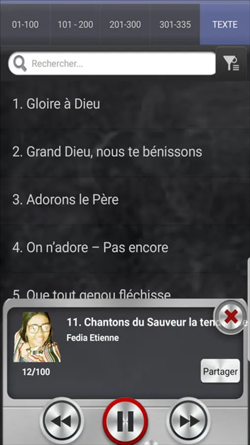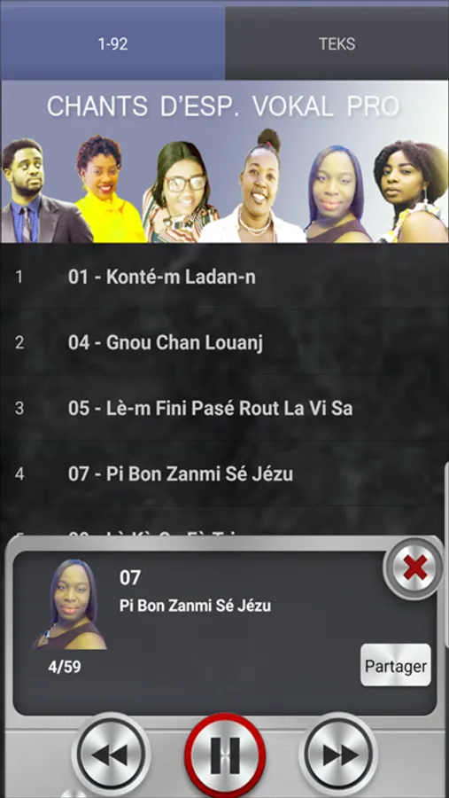 This app is brought to you by Chants d'Espérance Audio Project Team. The Vocal Pro Version of the missing companion to the Chants D'esperance hymns book contains 5 hymn books and their lyrics, which are the following: Chants d'Esperance Français and Kreyòl, Mélodies Joyeuses Francais/Creole and Haiti Chante Avec Radio Lumiere. We also provide the text each book. We can now sing along while listening to the music playing and to the voice for each song. Once the play button on the first song is pushed, the app will automatically play the rest of the hymns for you; easy to use; the goal is to help you learn all the songs as written by the composers with a full instrumental back up for each song. This app is ideal for personal devotion, weddings, wedding receptions, walking in the park, and special occasions where a spiritual atmosphere requires spiritual instrumentals;